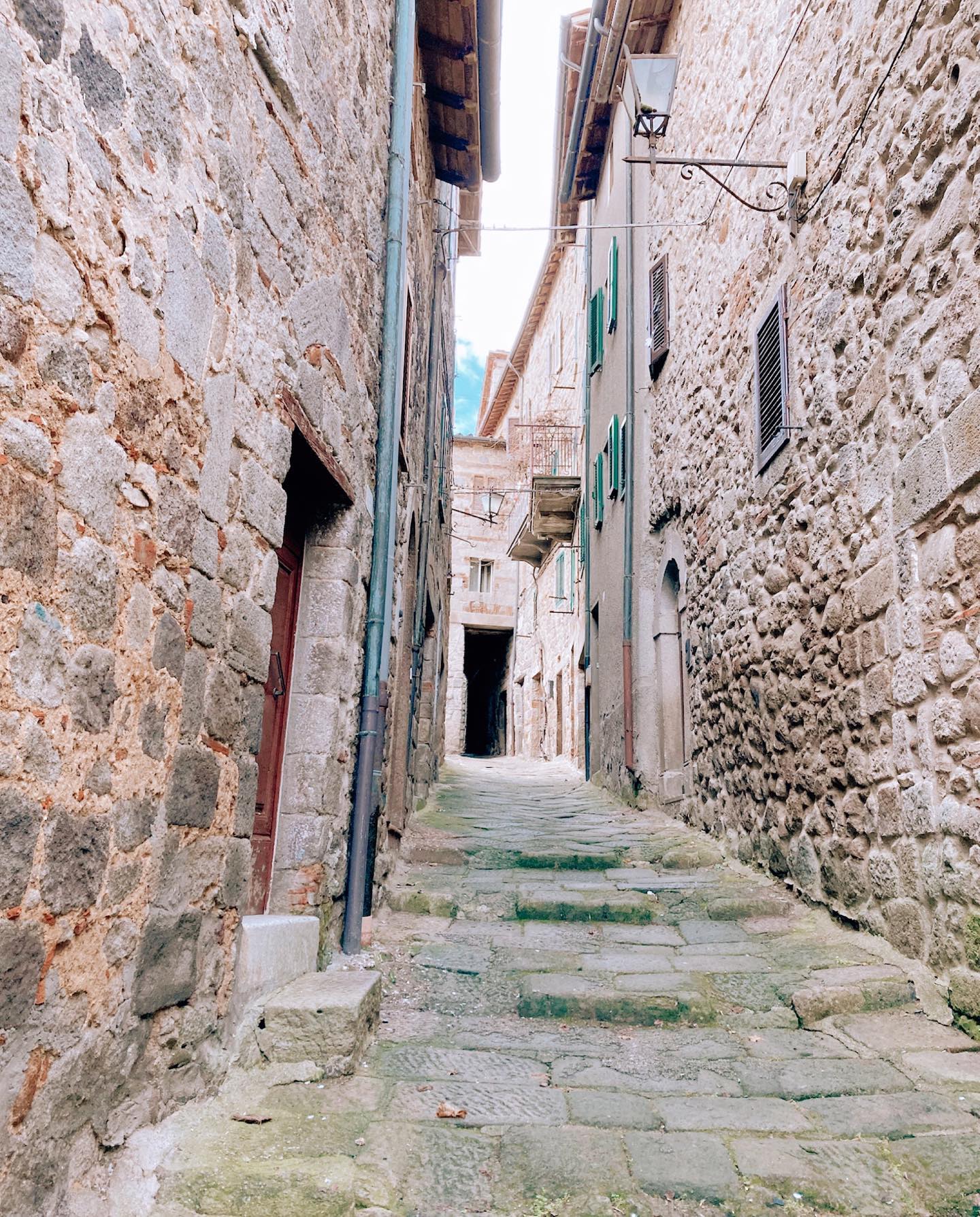 Il borgo medievale di Abbadia San Salvatore è un dedalo di stradine strette, archi in pietra e case torri. Durante il periodo natalizio si arricchisce di luminarie e presepi artigianali, che lo rendono ancora più suggestivo. Anche fuori dalle festività, vale la pena passeggiare senza meta, lasciandosi sorprendere da scorci pittoreschi, piccole piazze e botteghe artigiane.