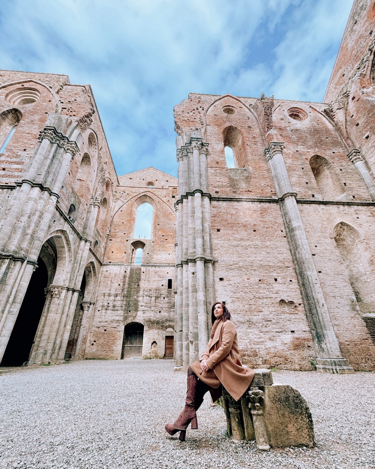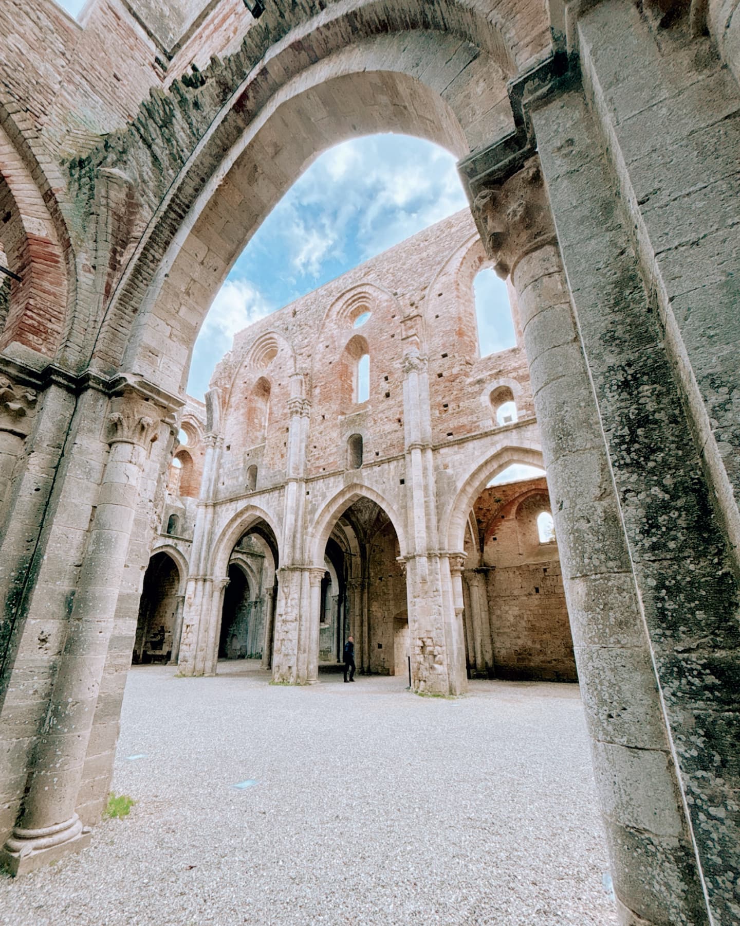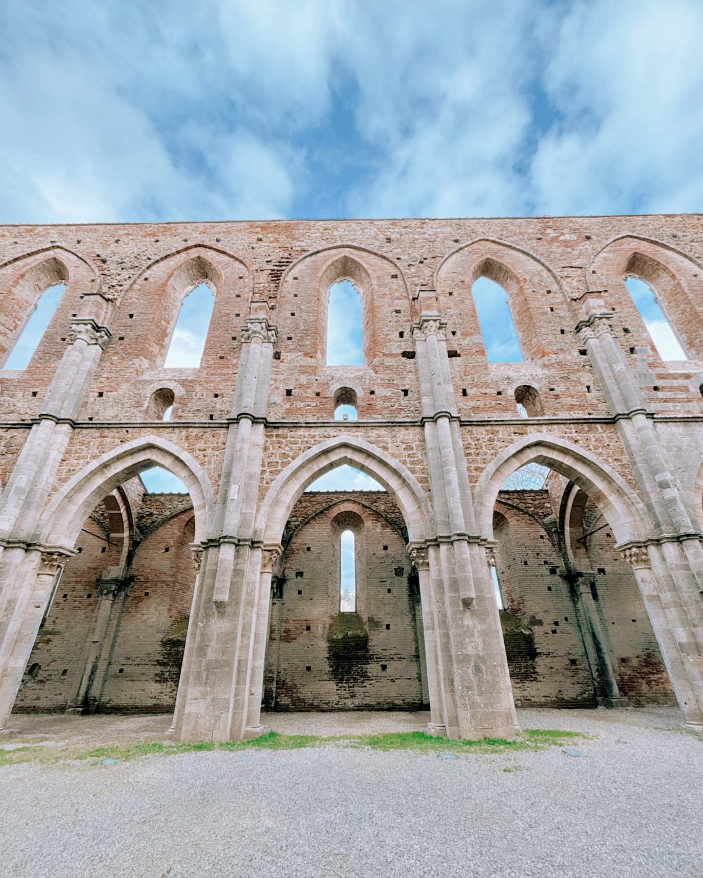 Oggi rimangono solo le sue imponenti mura, con l’abside ancora in piedi e le finestre a sesto acuto che decorano la facciata. Il tetto è scomparso nel corso dei secoli, con leggende che narrano di un tetto di piombo venduto nel 1550. Le rovine dell’abbazia, ormai sconsacrate e lasciate alle intemperie dal Settecento, offrono uno spettacolo incredibile nella campagna toscana.