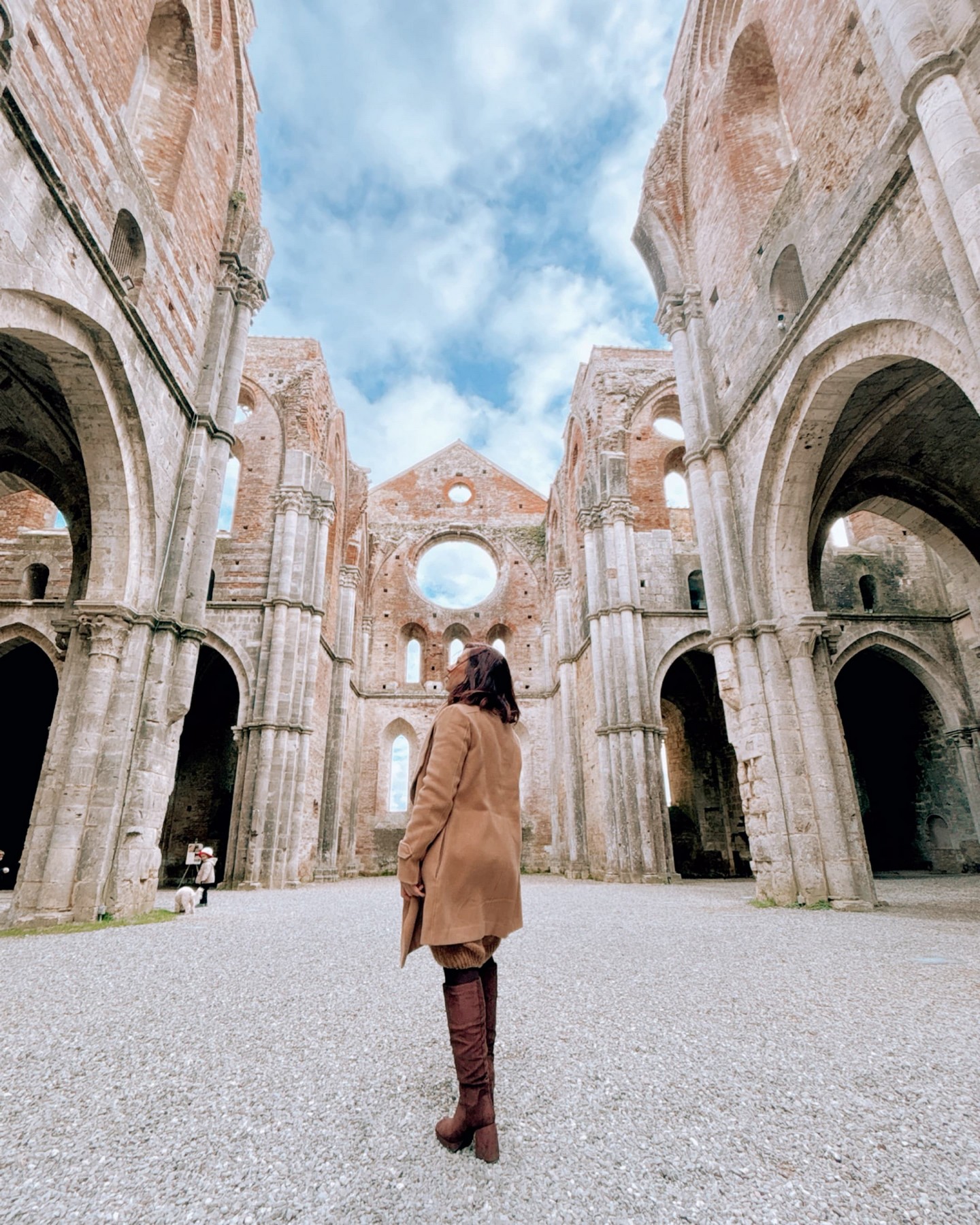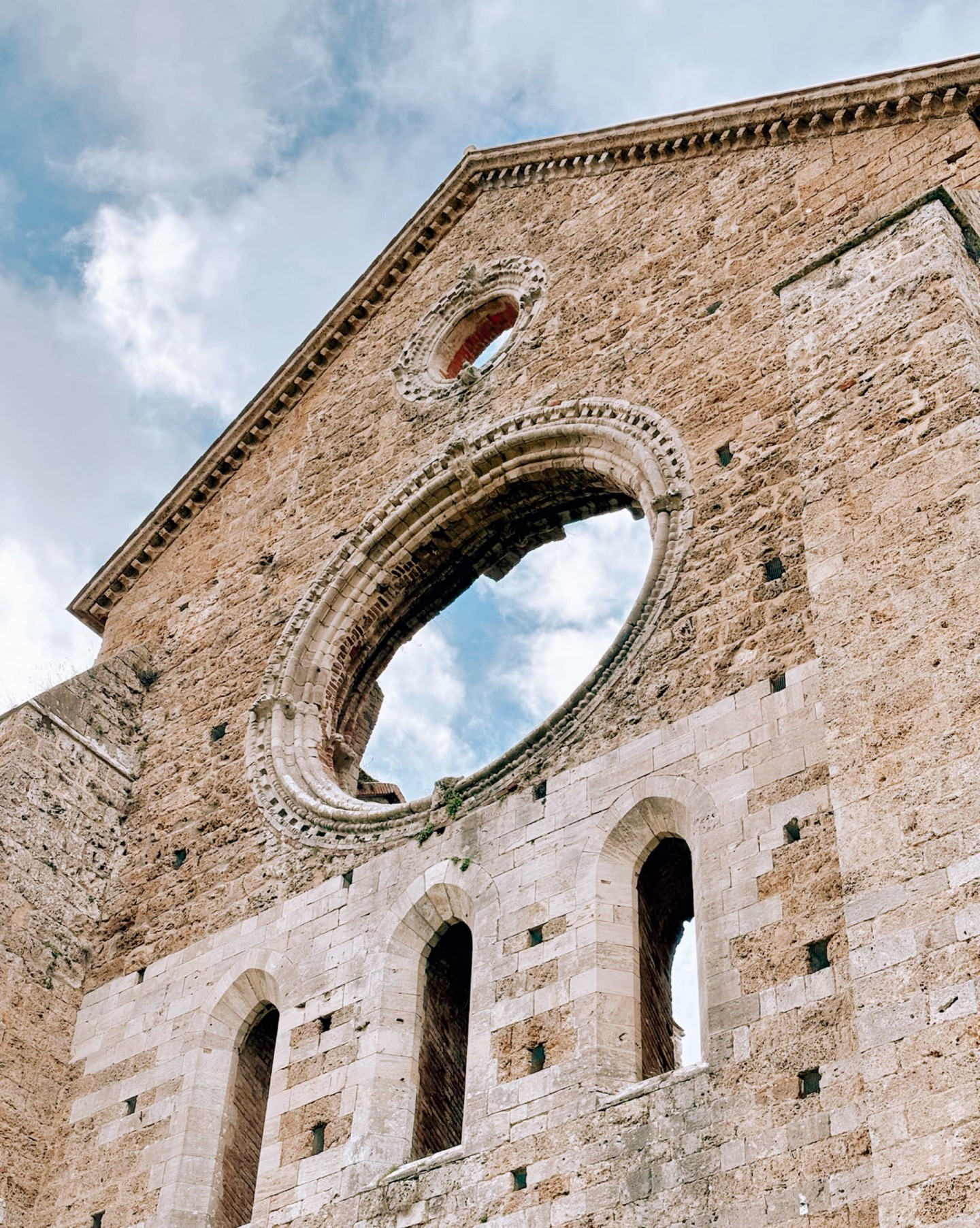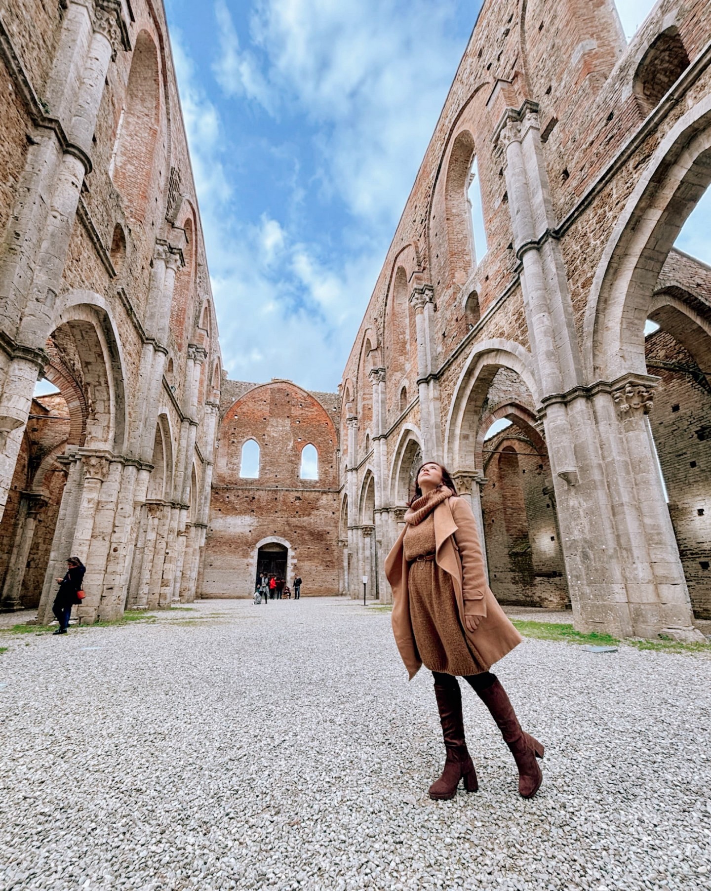 Oggi rimangono solo le sue imponenti mura, con l’abside ancora in piedi e le finestre a sesto acuto che decorano la facciata. Il tetto è scomparso nel corso dei secoli, con leggende che narrano di un tetto di piombo venduto nel 1550. Le rovine dell’abbazia, ormai sconsacrate e lasciate alle intemperie dal Settecento, offrono uno spettacolo incredibile nella campagna toscana.