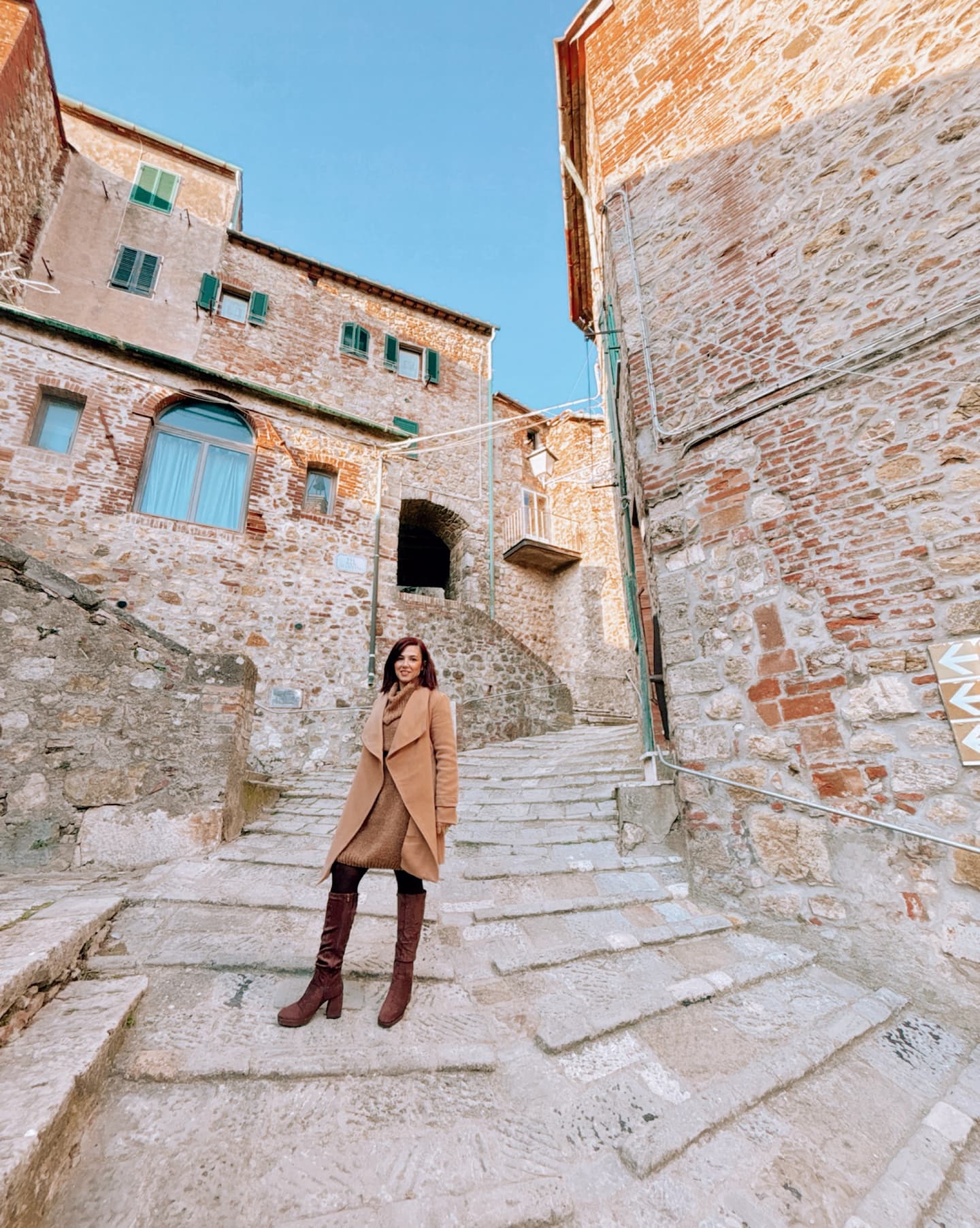 L’antico paese mantiene intatto il fascino medievale, con tratti delle possenti mura cittadine che si ergono fieramente. Attraversandone le vie, è possibile scorgere case d’epoca, tra cui quella presunta come luogo di nascita di San Galgano (Galgano Guidotti), intorno al 1150.