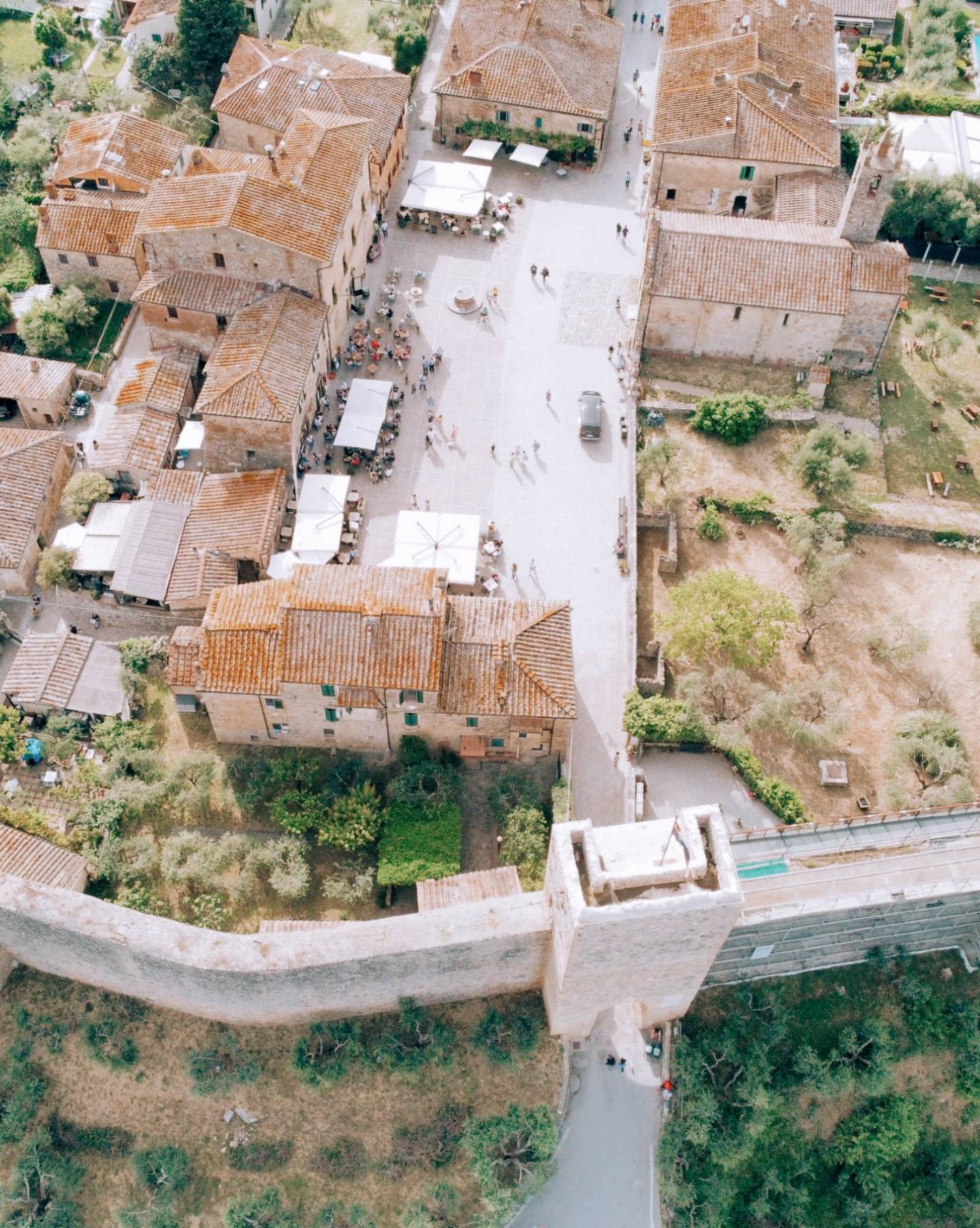 Monteriggioni è circondato, come detto in precedenza, da una cinta muraria, che conta ben 14 torri, che lo rende uno dei borghi fortificati meglio conservati in Italia. All’interno delle mura, il borgo è pieno di strade strette e tortuose, case in pietra e piccole piazze, che creano un’atmosfera suggestiva e romantica.